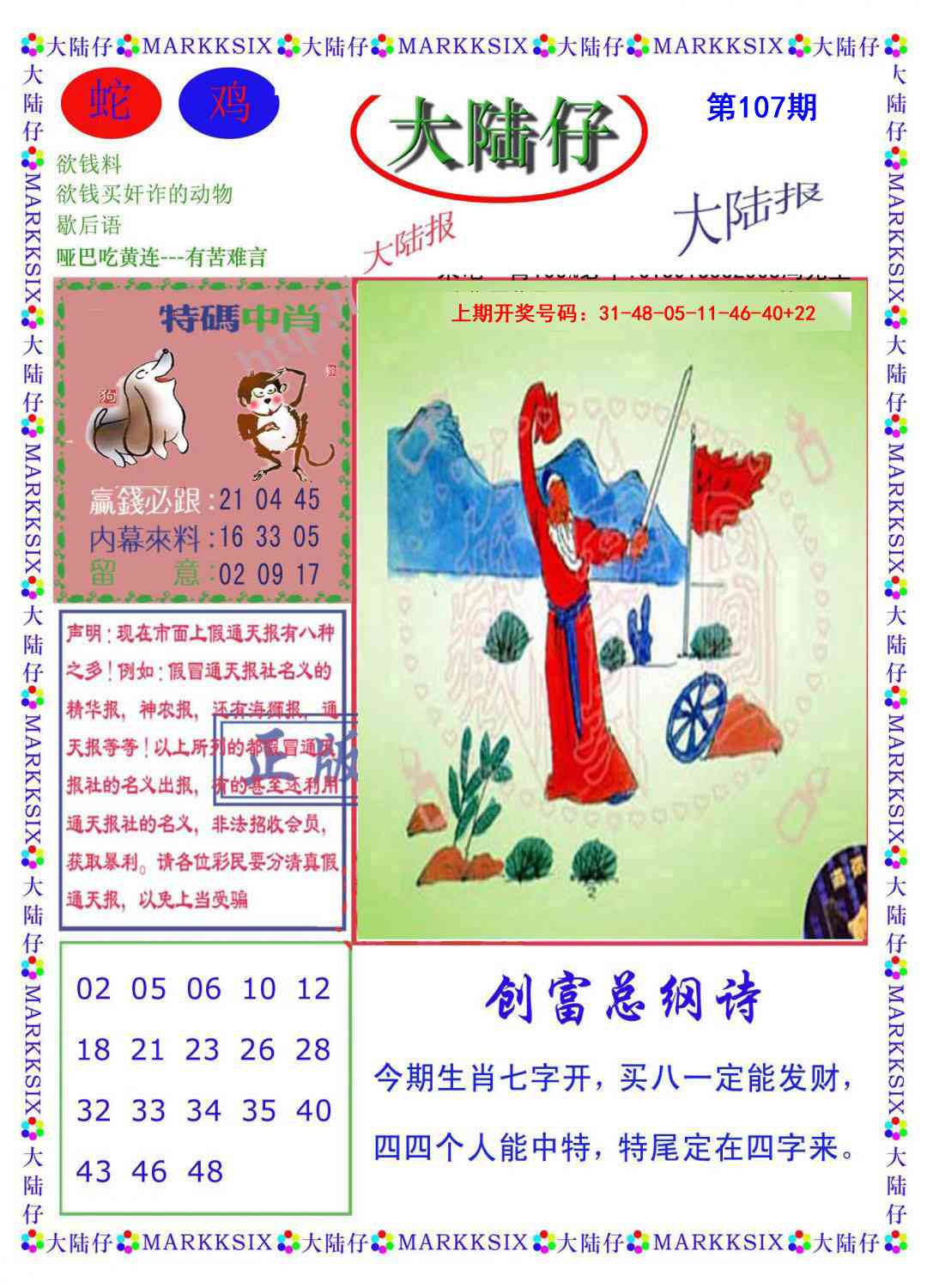 106期红字暗码【俊杰廉悍】【07 23 34 46】